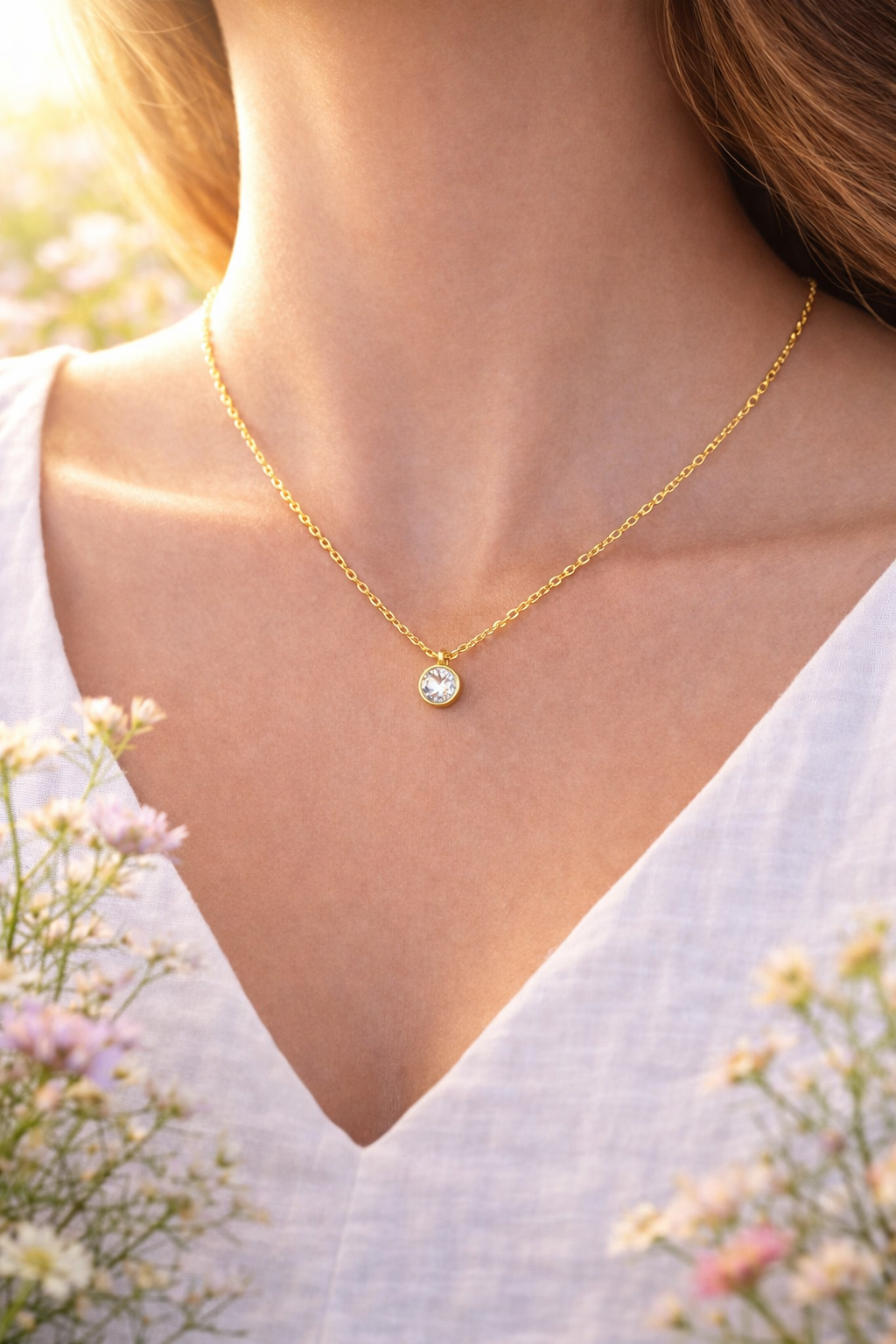 Klassisk 18K gullbelagt halskjede med glitrende anheng