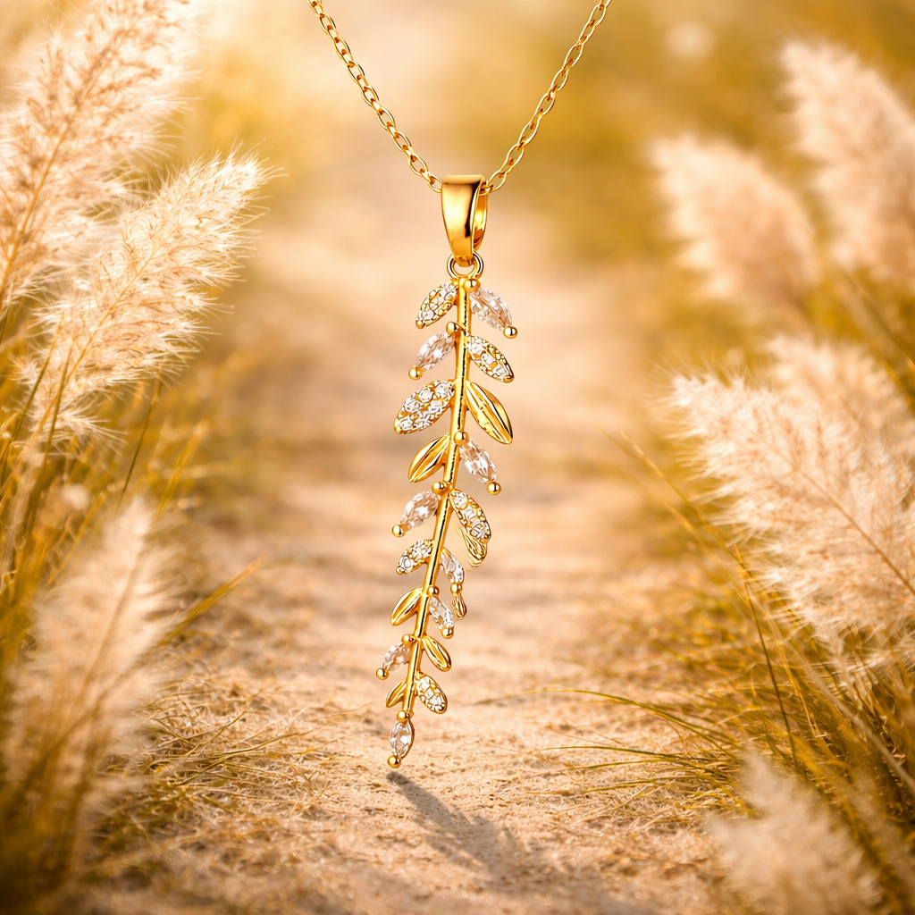 Et elegant halskjede som fanger naturens skjønnhet i et tidløst design. Det delikate bladmotivet, pyntet med glitrende cubic zirconia-steiner, gir et feminint og sofistikert uttrykk – perfekt både til hverdags og festlige anledninger.