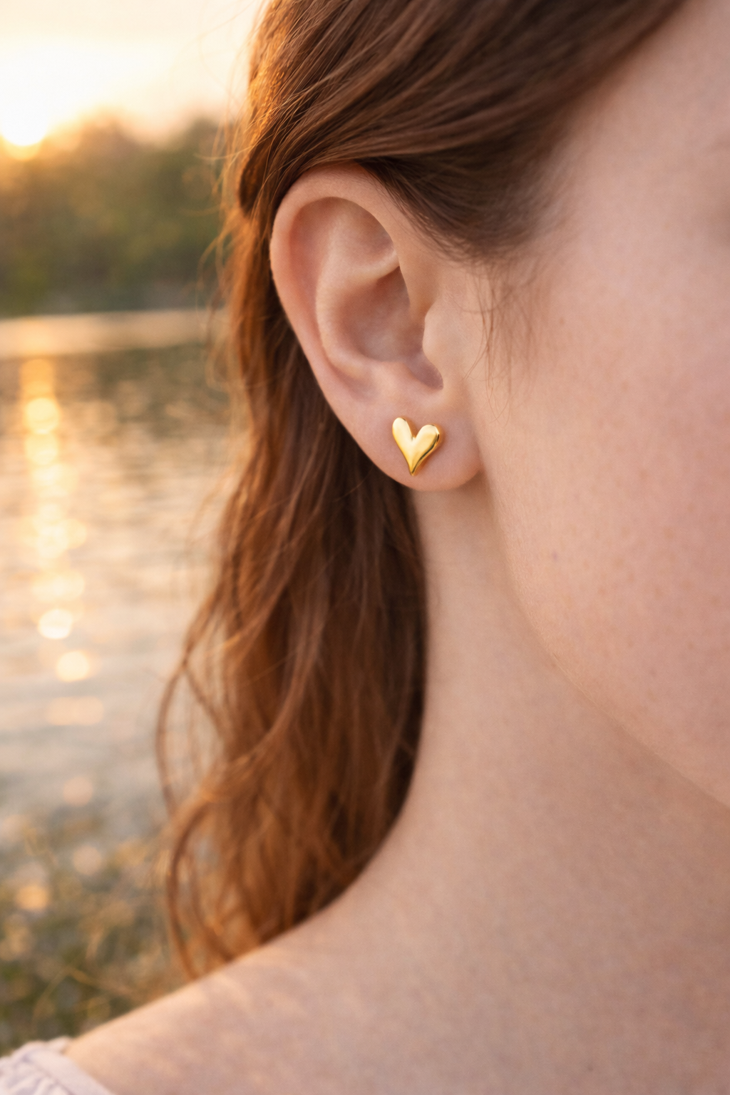 Hjerteformede Øredobber – 18K Gullbelagt Stål