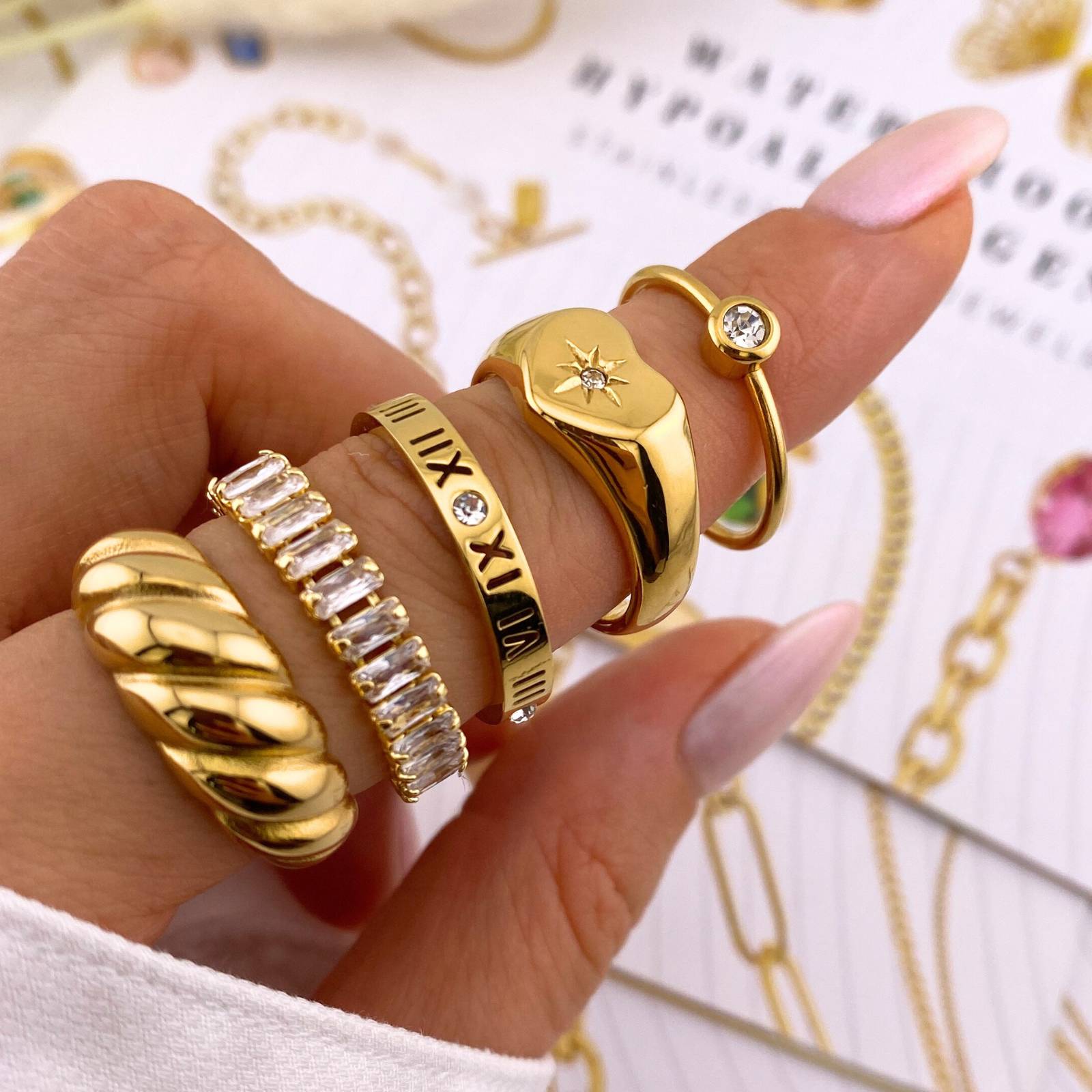 Moderne Gullring med Zirkonia – 18K Gullbelagt Stål