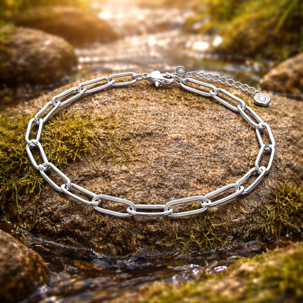 Laget av rustfritt stål, er dette armbåndet vanntett og allergivennlig, og holder seg vakkert uten å misfarges eller falme over tid. Et smykke du kan bruke – alltid og overalt.