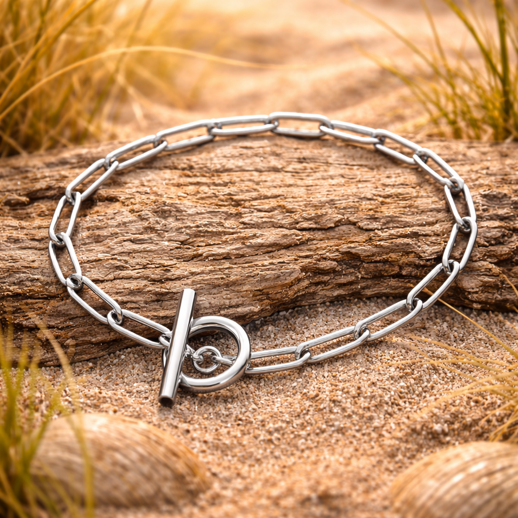 Laget av rustfritt stål for høy kvalitet og langvarig glans. Armbåndet er vanntett og allergivennlig, slik at du trygt kan bruke det hver dag – uten bekymring for misfarging eller irritasjon.