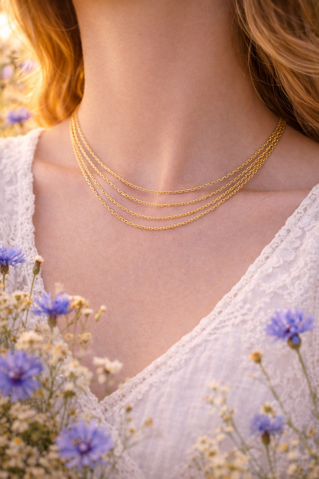 Halskjede i 18K gullbelagt stål – elegant og tidløst flertrådsdesign