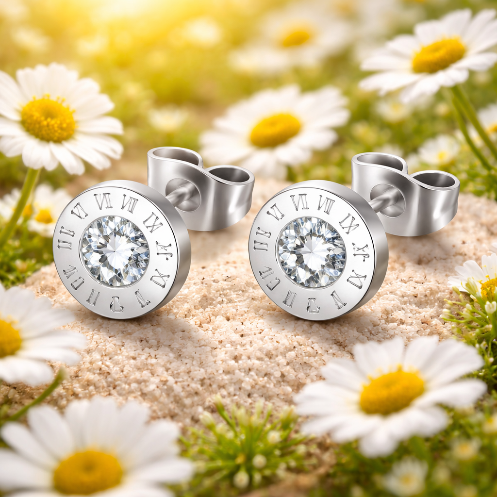 Roman Øredobbene kombinerer tidløs eleganse med et moderne uttrykk. De romerske tallene rundt den glitrende steinen gir et sofistikert preg, mens den blanke sølvfargen gjør dem lette å matche til enhver anledning.