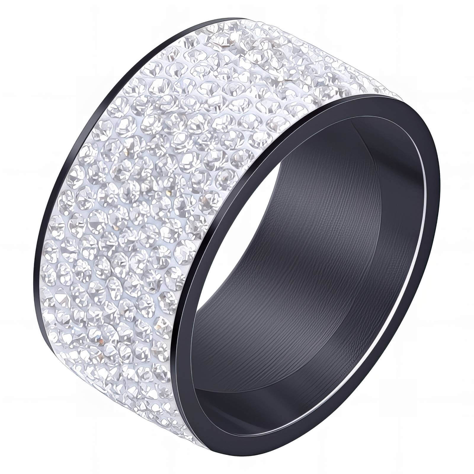 Glitrende bred ring i rustfritt stål med cubic zirconia