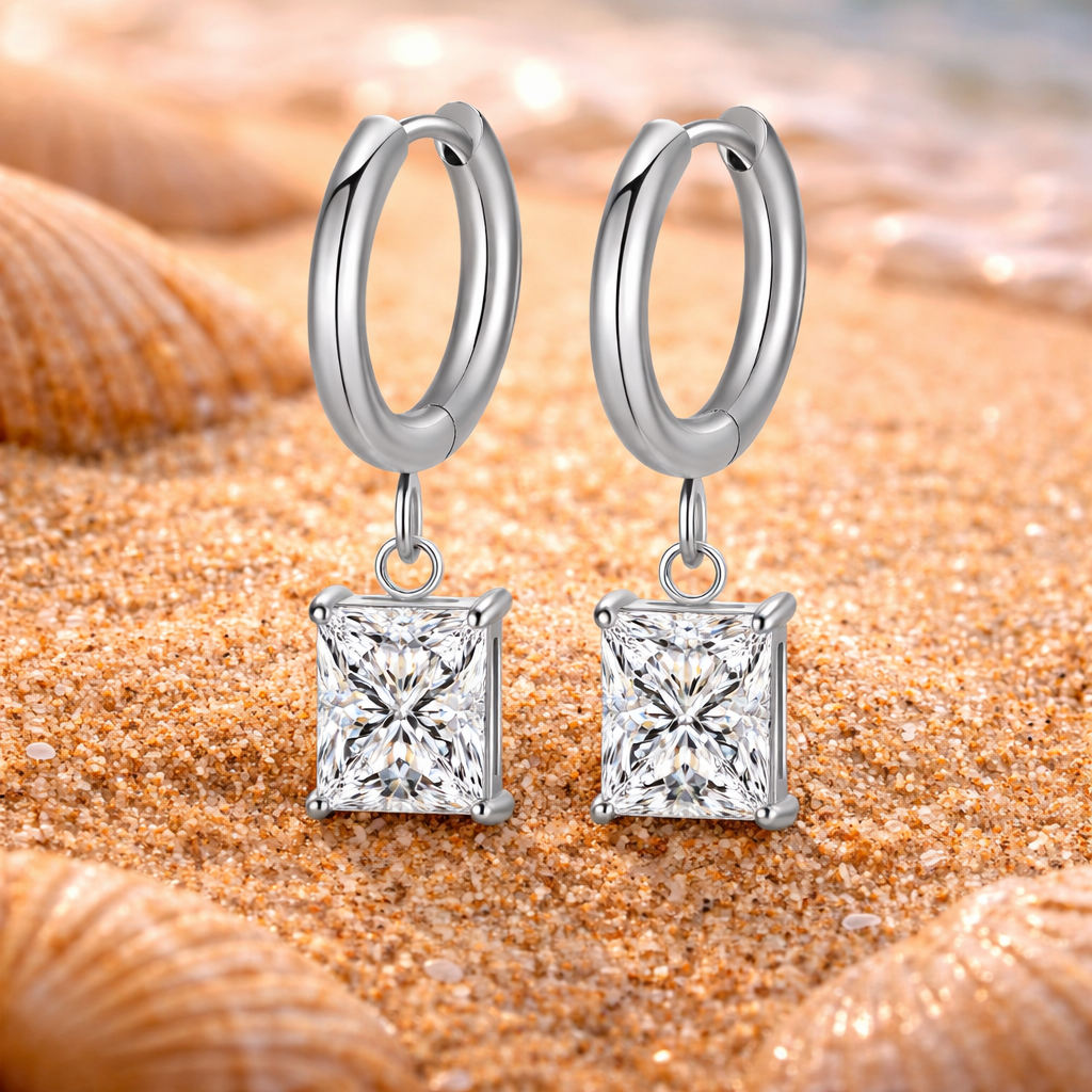 Disse stilfulle øredobbene i rustfritt stål kombinerer klassisk design med moderne eleganse. Den firkantede kubiske zirkonia-steinen gir et luksuriøst preg og tilfører akkurat nok glans til ethvert antrekk – perfekt til både hverdagsbruk og spesielle anledninger.