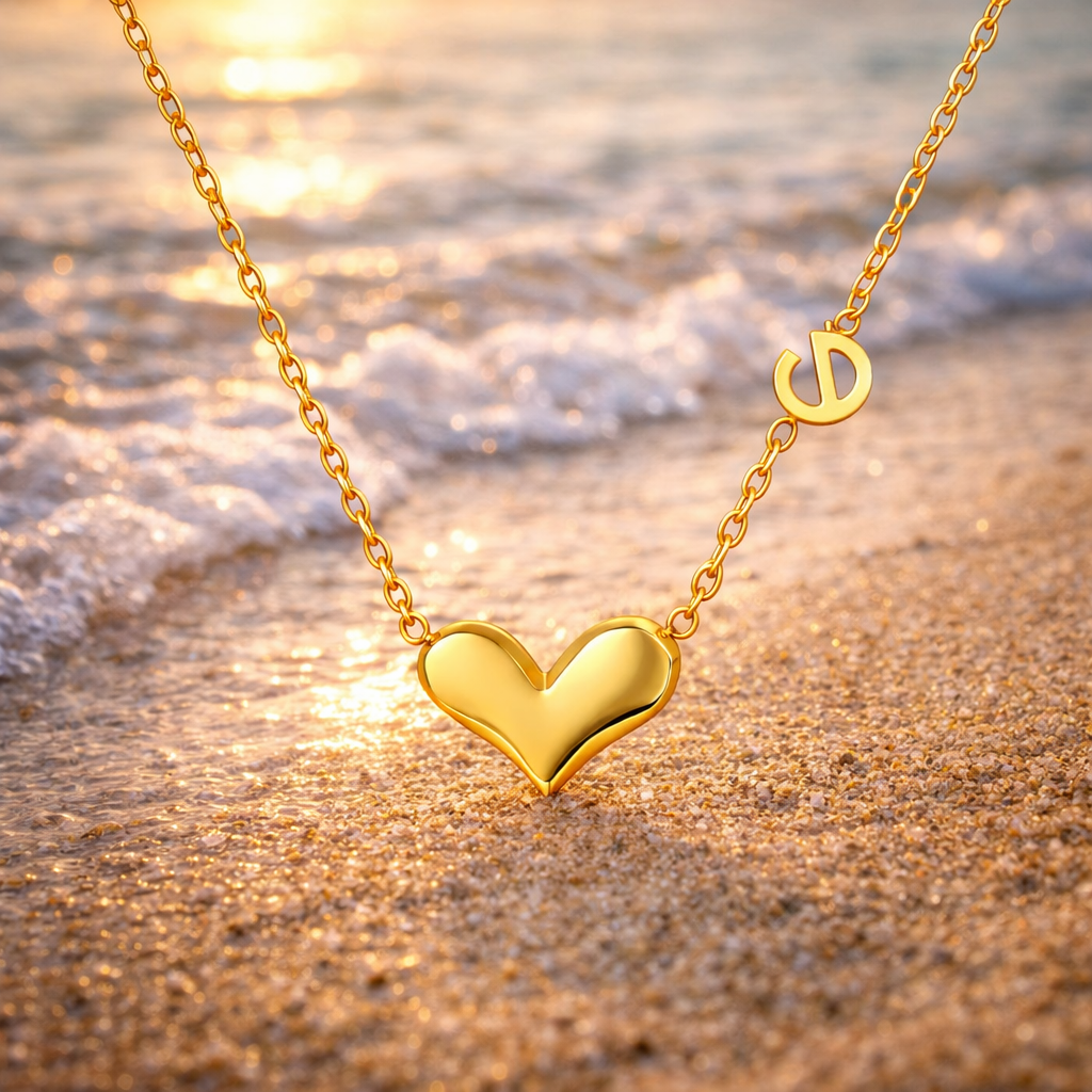 Mykt som bølgene mot stranden og varmt som sollys i gull – Hjerte Halskjede er en hyllest til kjærligheten i sin reneste form. Det enkle, men uttrykksfulle hjertet i 18K gullbelagt rustfritt stål fanger lyset og gjenspeiler følelsen av ro, nærhet og varme.